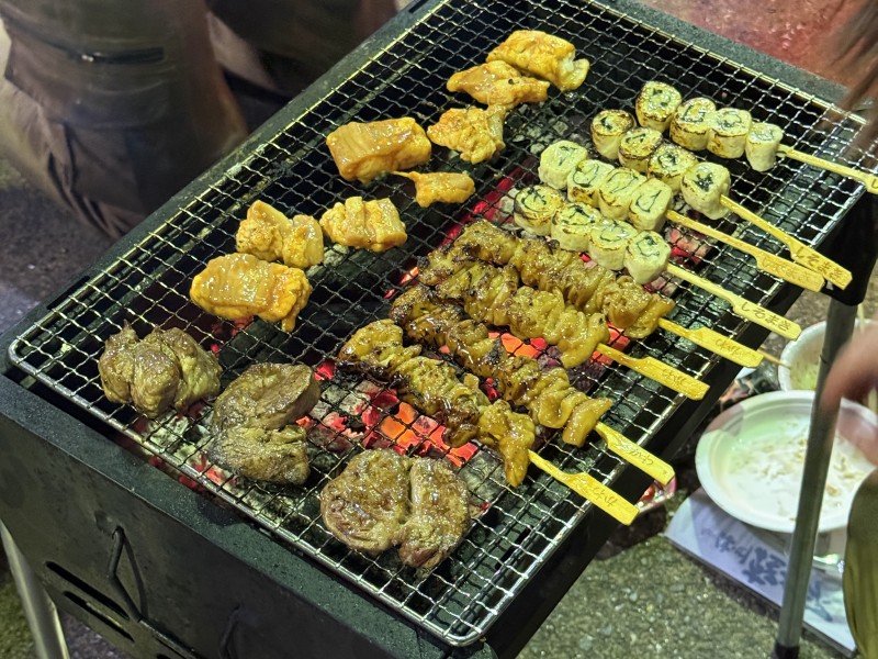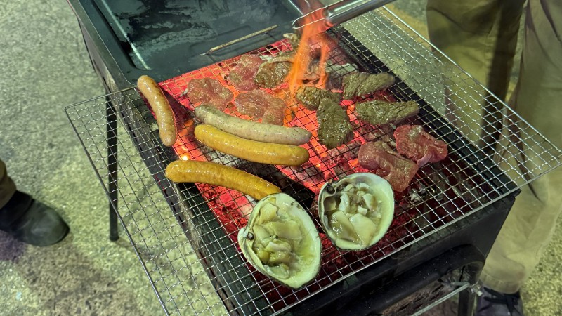 こちらは牛タン、ウインナー、はまぐり、ヤキトリと炭火で焼くととても美味です。