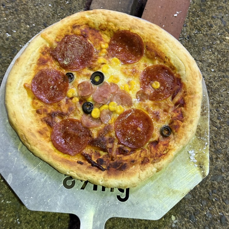 ピザはナガちゃんが上手に焼いてくれました。(抜群の焼き色です🤤)