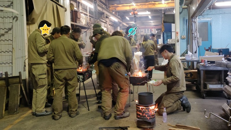 みんなでコンロを囲み、楽しく食事をしてます😋